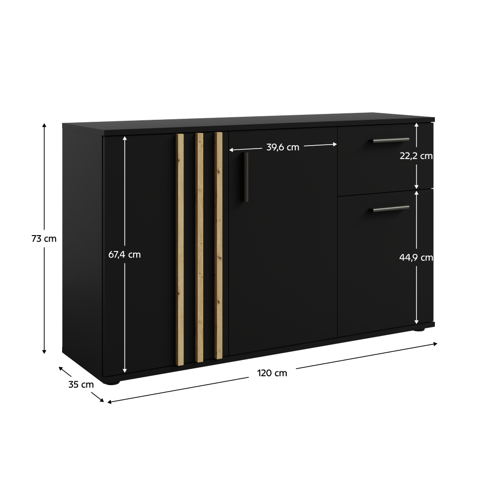 Komoda, 3D1S, čierna/dub artisan, TOLIS TYP 2