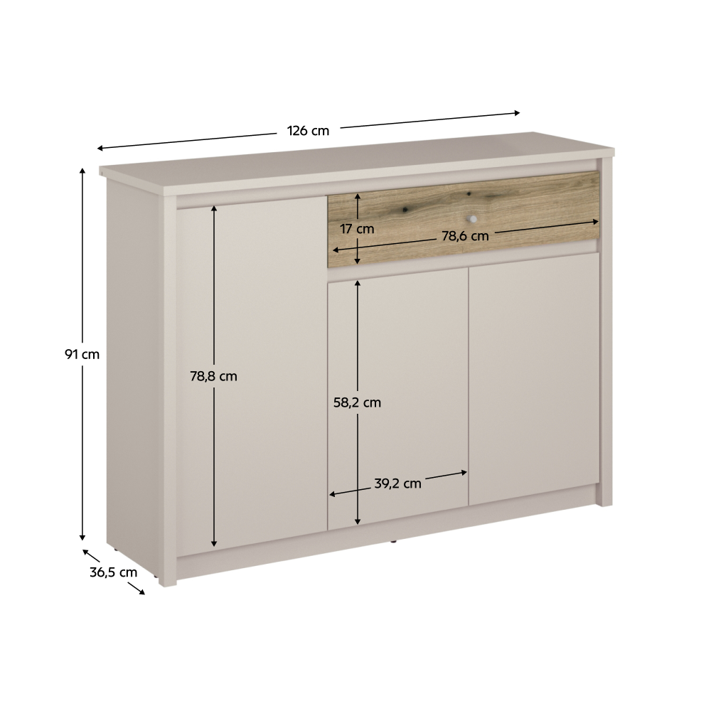 • Komoda, kašmír/dub evoke, KAROS 3D1S