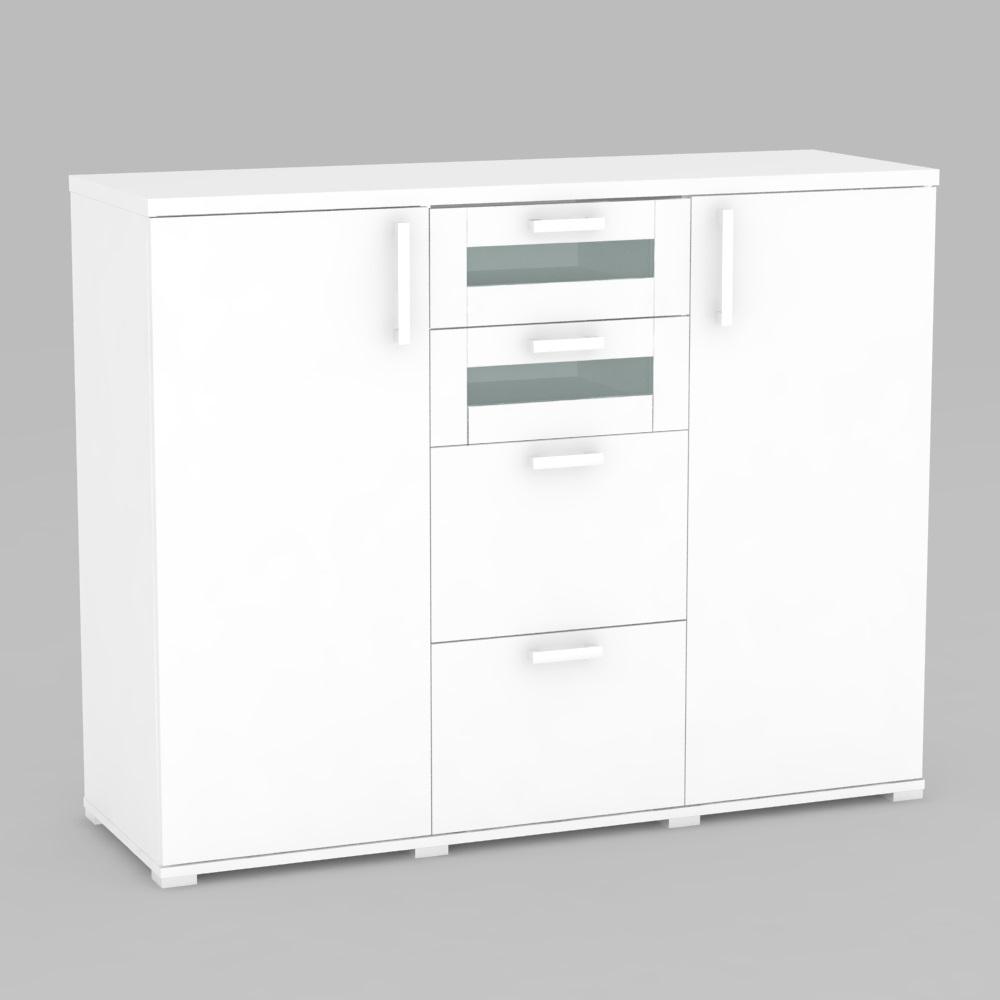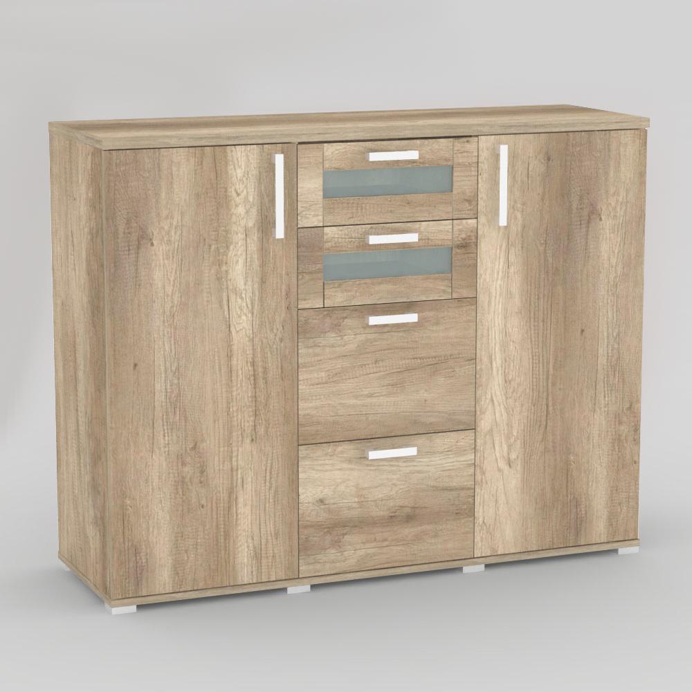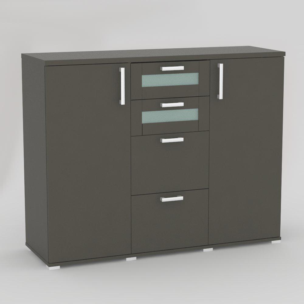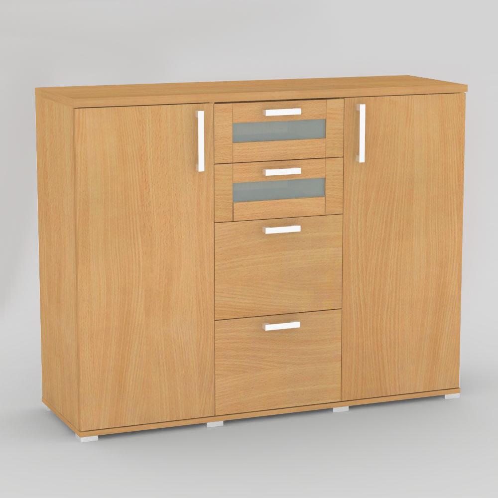 Komoda kombinovaná 2x dvierka + 4 x zásuvka - 2x sklo