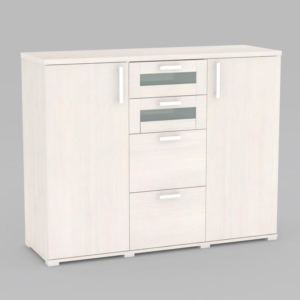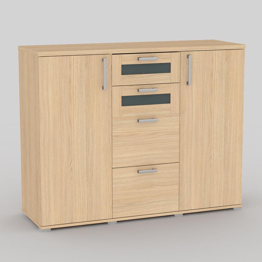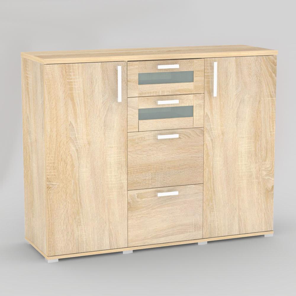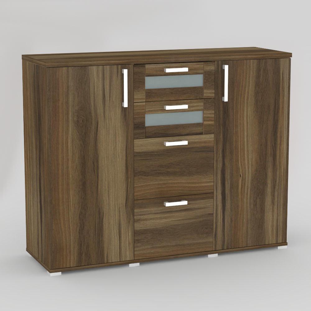 Komoda kombinovaná 2x dvierka + 4 x zásuvka - 2x sklo