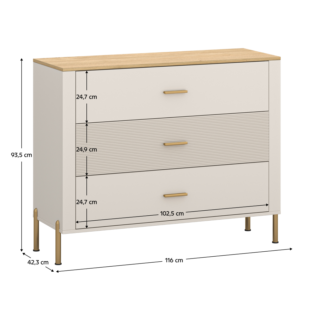 Komoda, kašmír/dub kamenný, RUNOL 3S