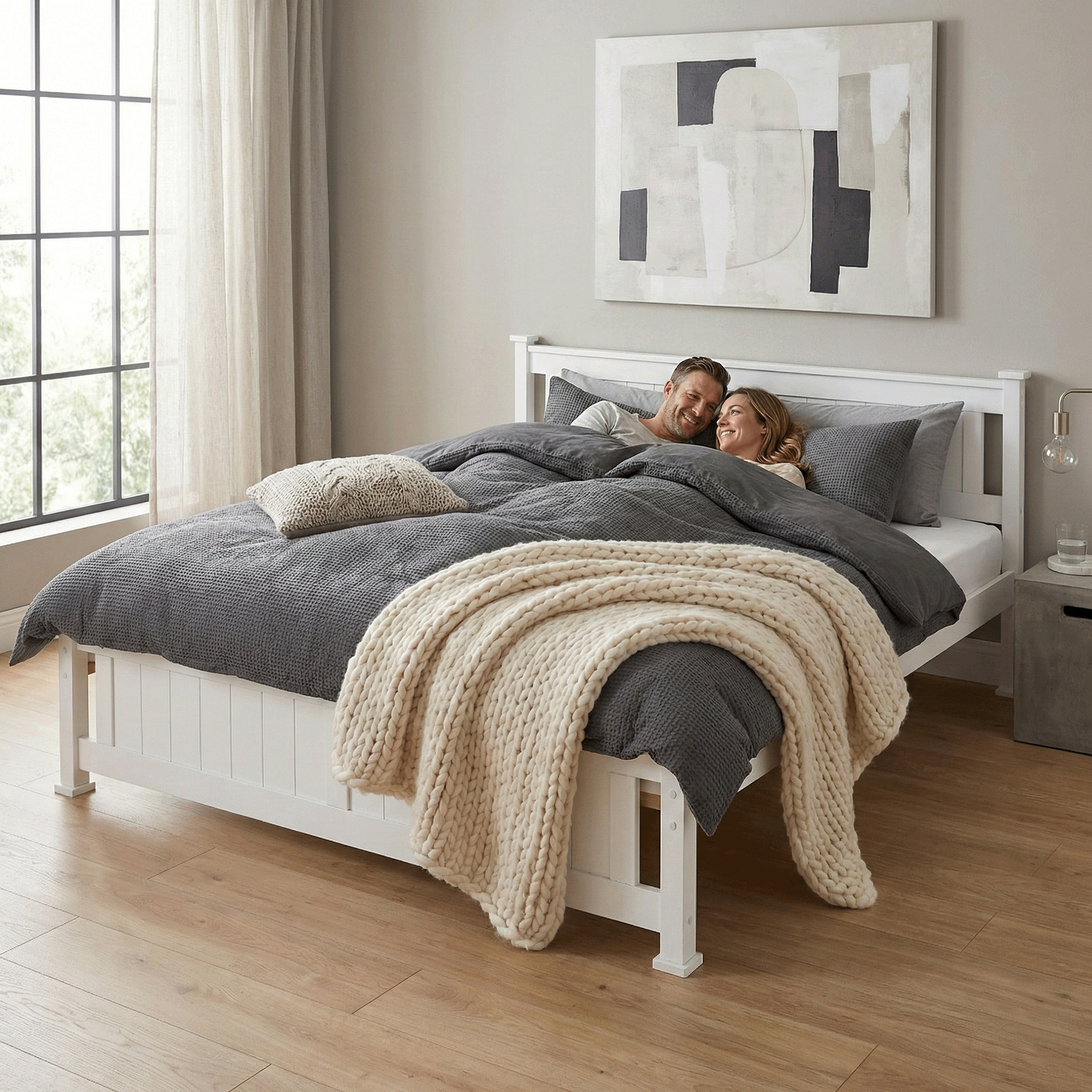 Posteľ s roštom, borovicové drevo/biela, 180x200, LUCAS NEW