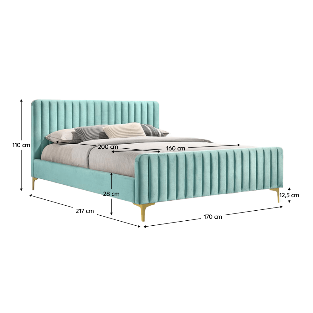 Posteľ, neo mint/gold chróm zlatý, 160x200, KAISA