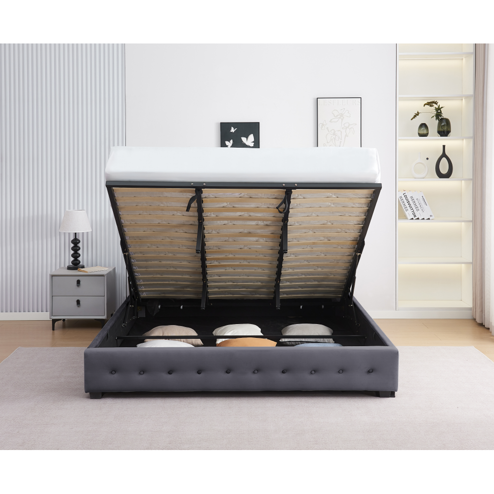 Posteľ s úložným priestorom, 180x200, sivá, MINDY
