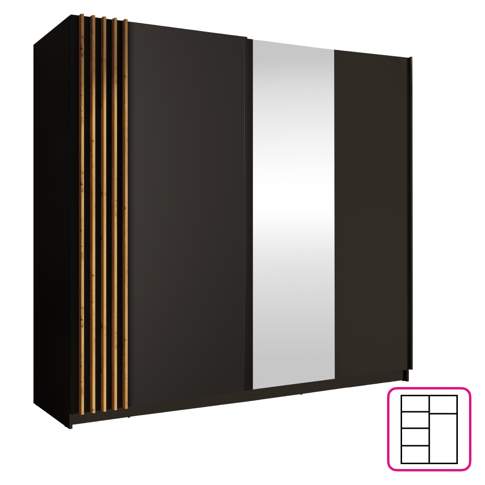 Skriňa, 2D-200, čierna/dub artisan, BAJADERO TYP 2
