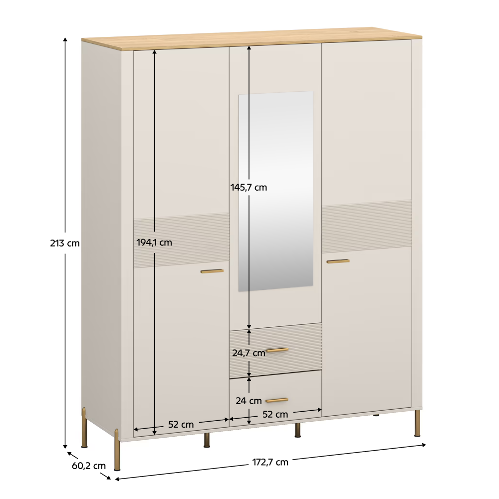 Skriňa so zrkadlom, kašmír/dub kamenný, RUNOL 3D2S
