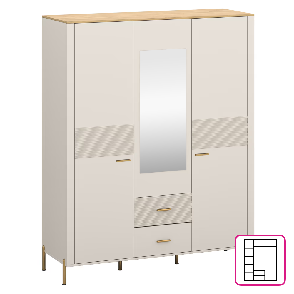 • Skriňa so zrkadlom, kašmír/dub kamenný, RUNOL 3D2S
