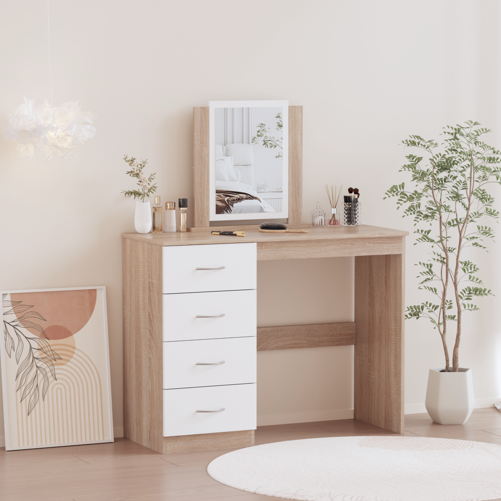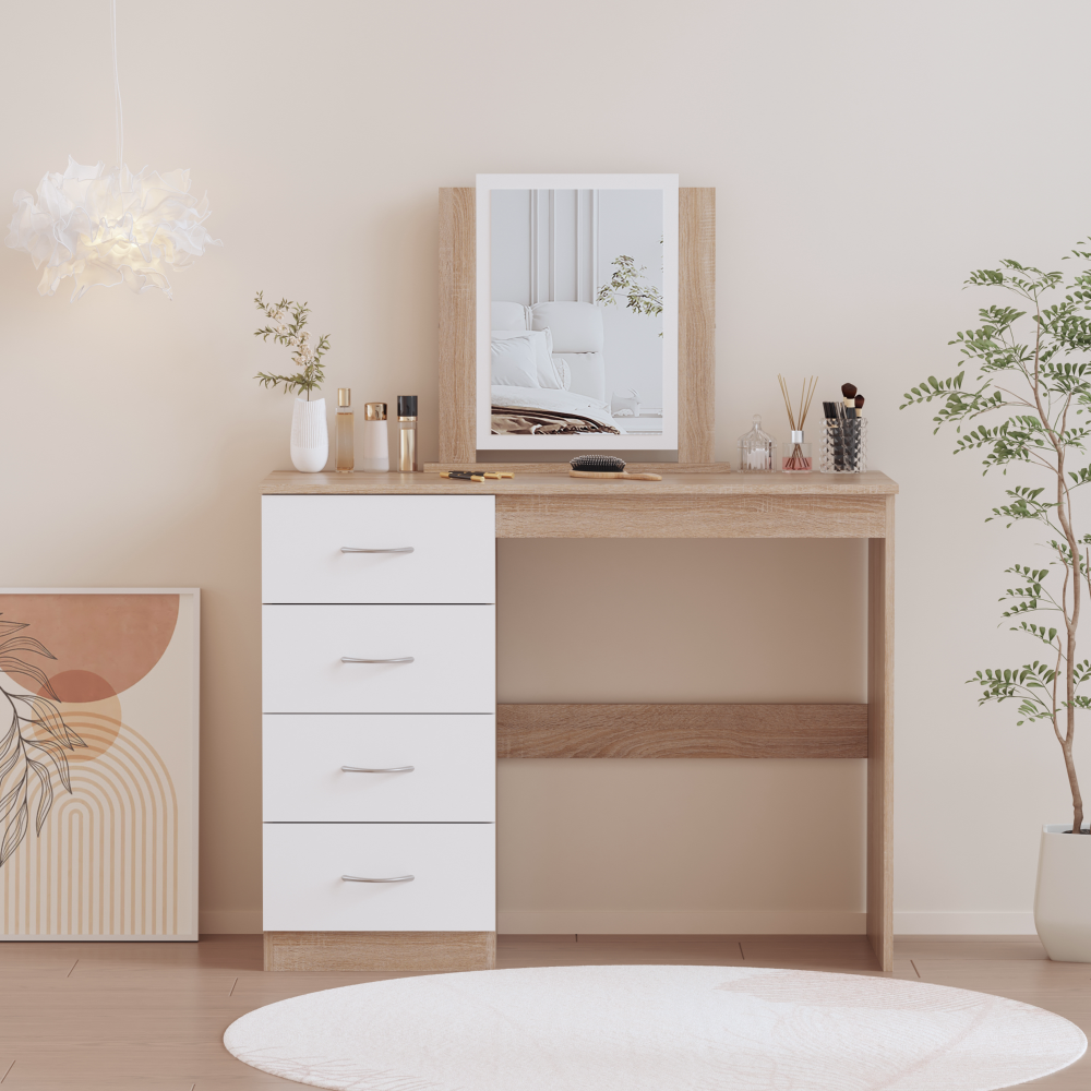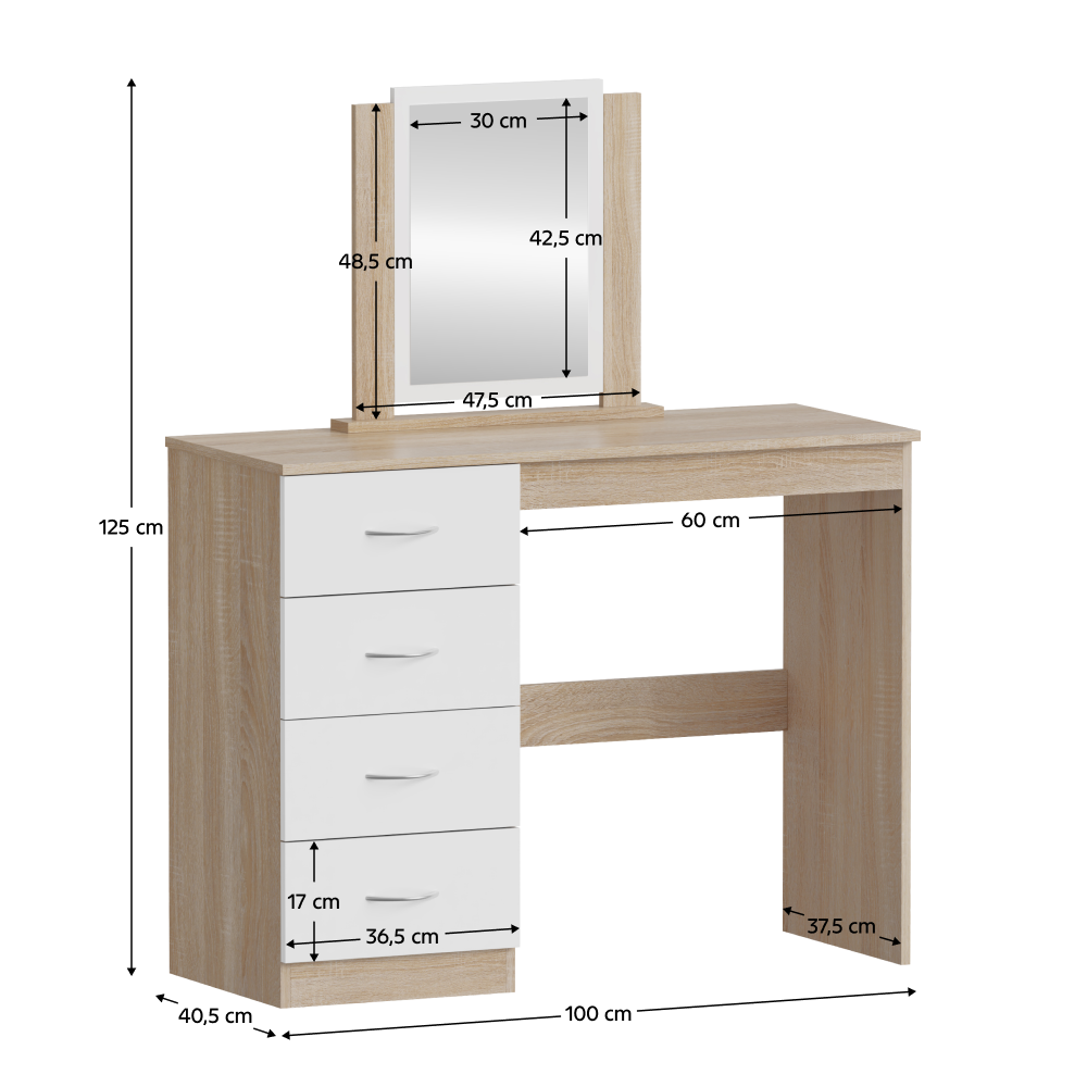 Toaletný stolík, dub sonoma/biela, KLEVIS