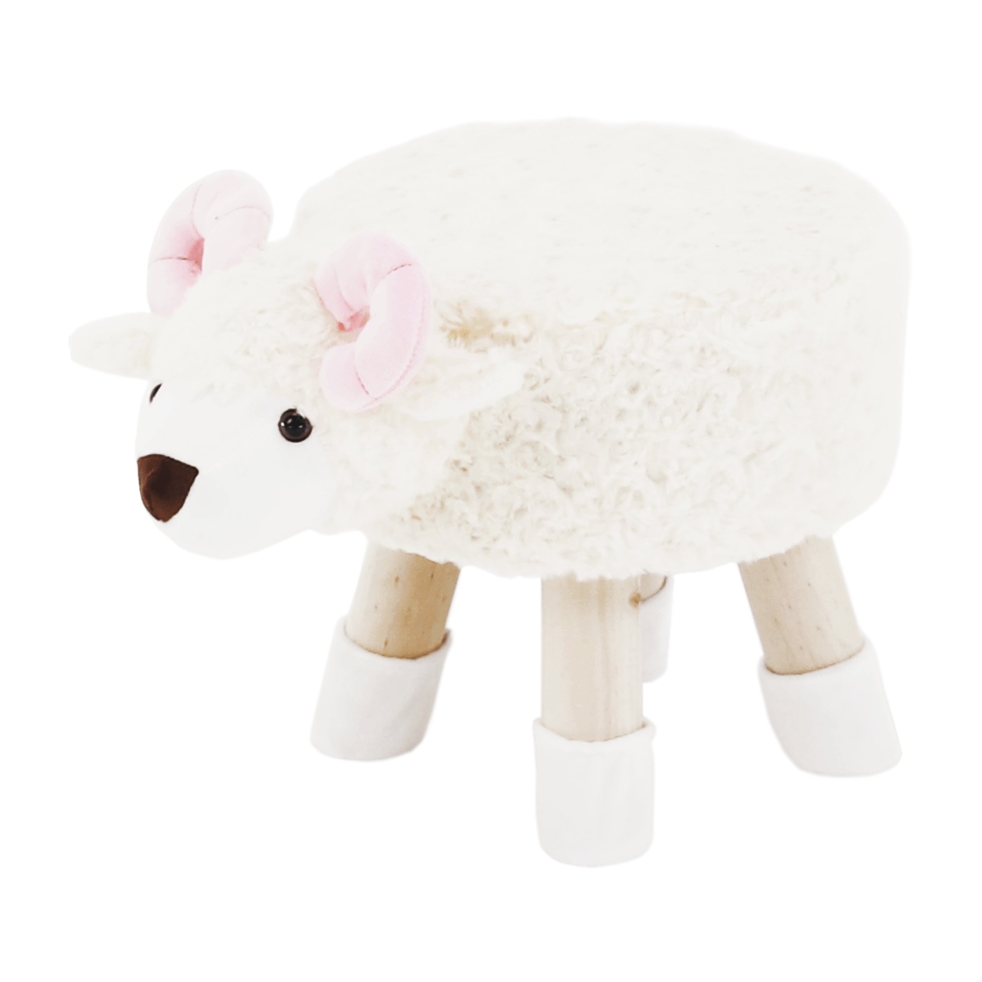 Taburet v tvare ovečky, látka Velvet biela/ružová/prírodná, LOLA