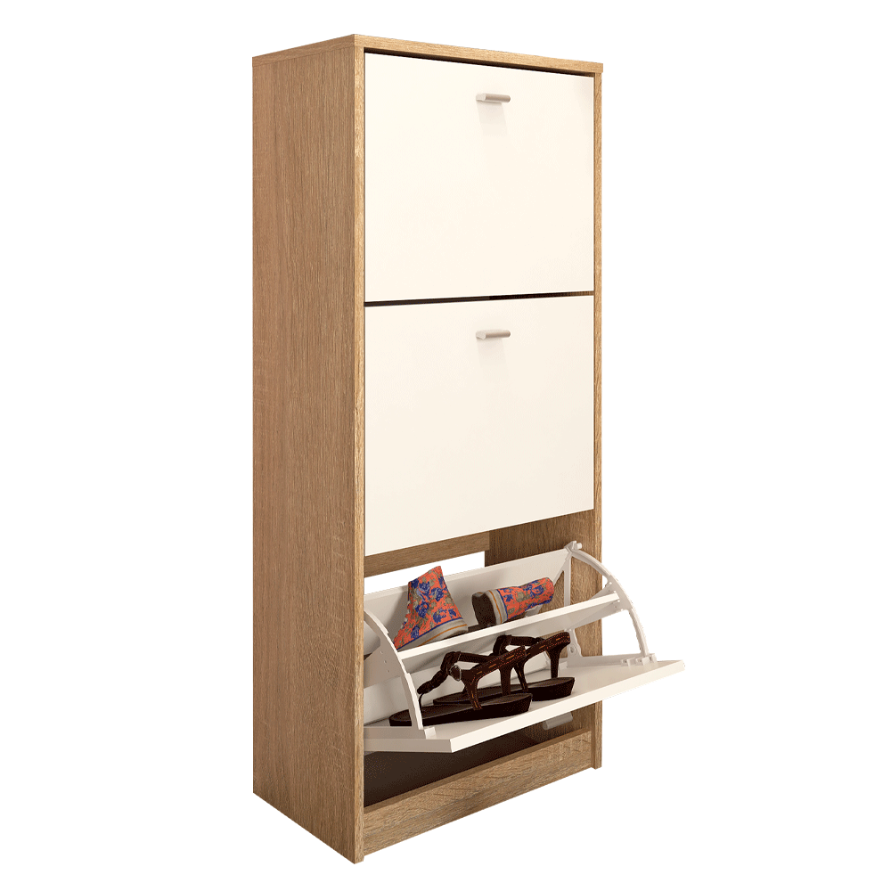 Trojradový botník, dub sonoma/biela, VIVAT NEW TYP 2