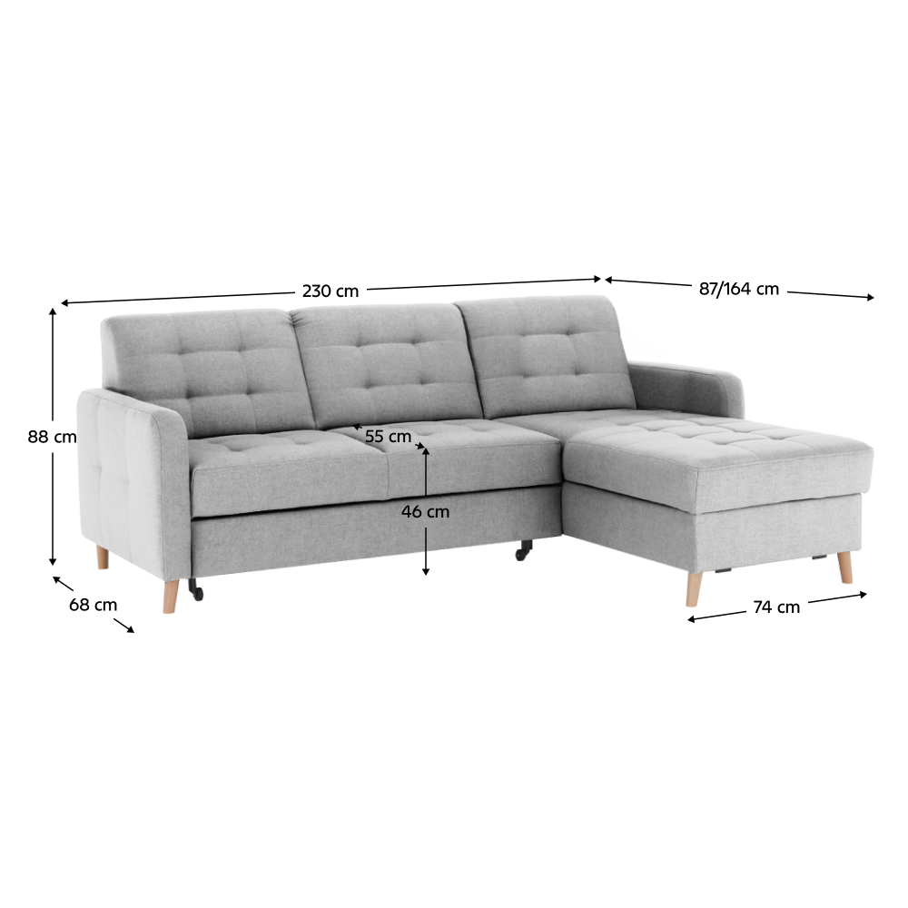 Rozmery (ŠxHxV): 230x87/164x88 cm
