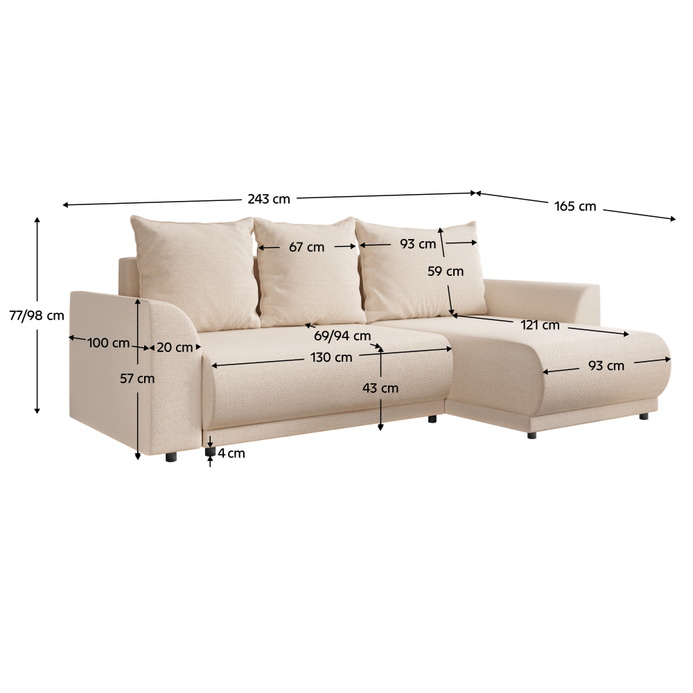 Rozmery (ŠxHxV): 243x165x77/98 cm