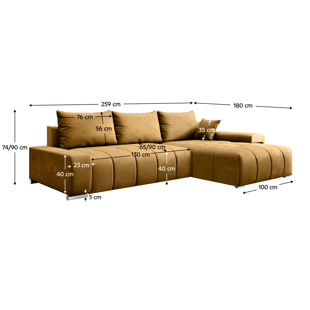 Rozmery (ŠxHxV): 259x180x74/90 cm