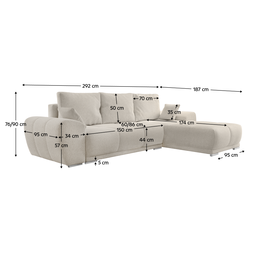 Rozmery (ŠxHxV): 292x187x76/90 cm