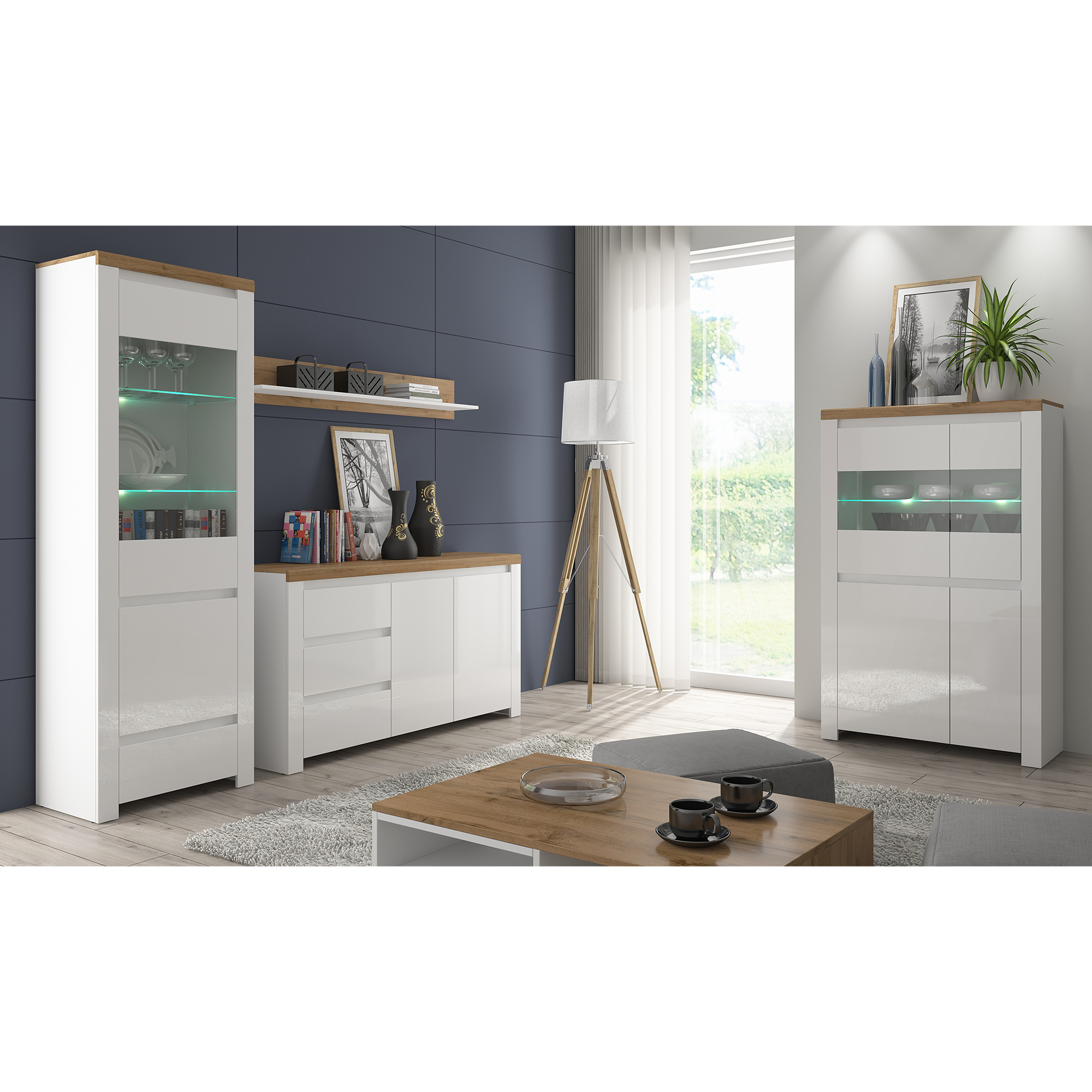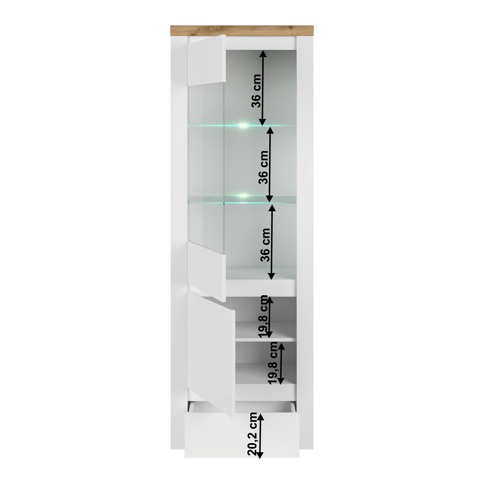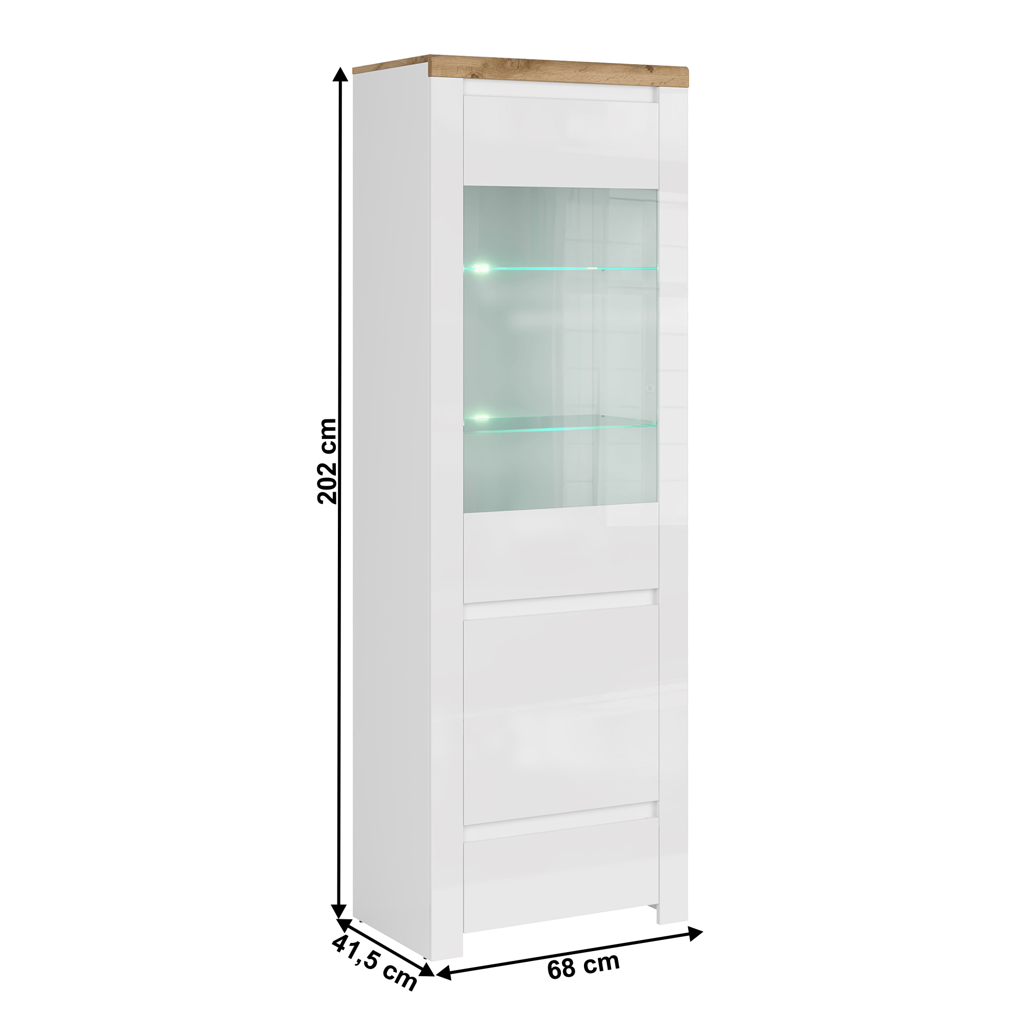 Vitrína 1D1W1S, biely lesk/dub wotan, VILGO