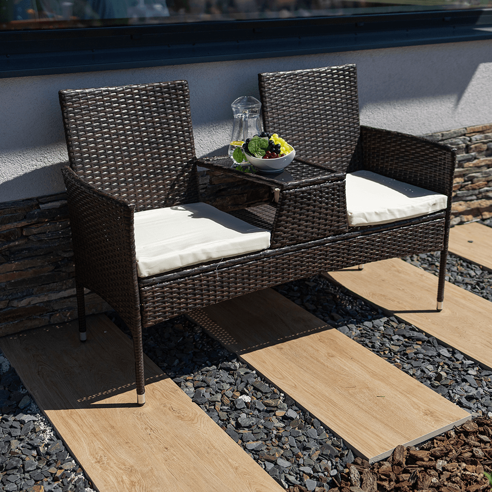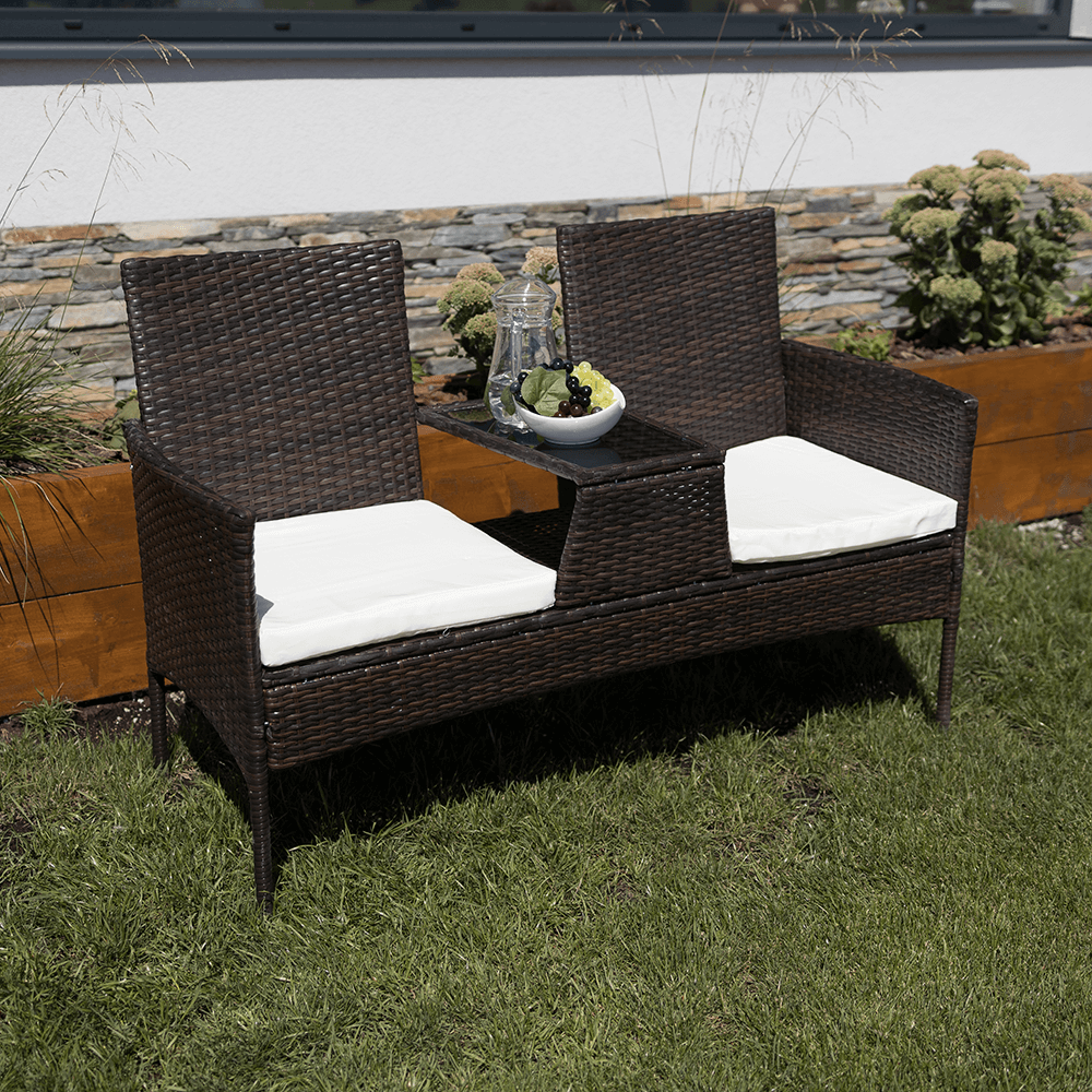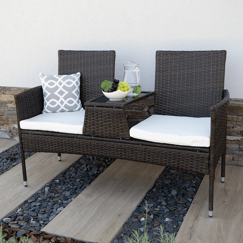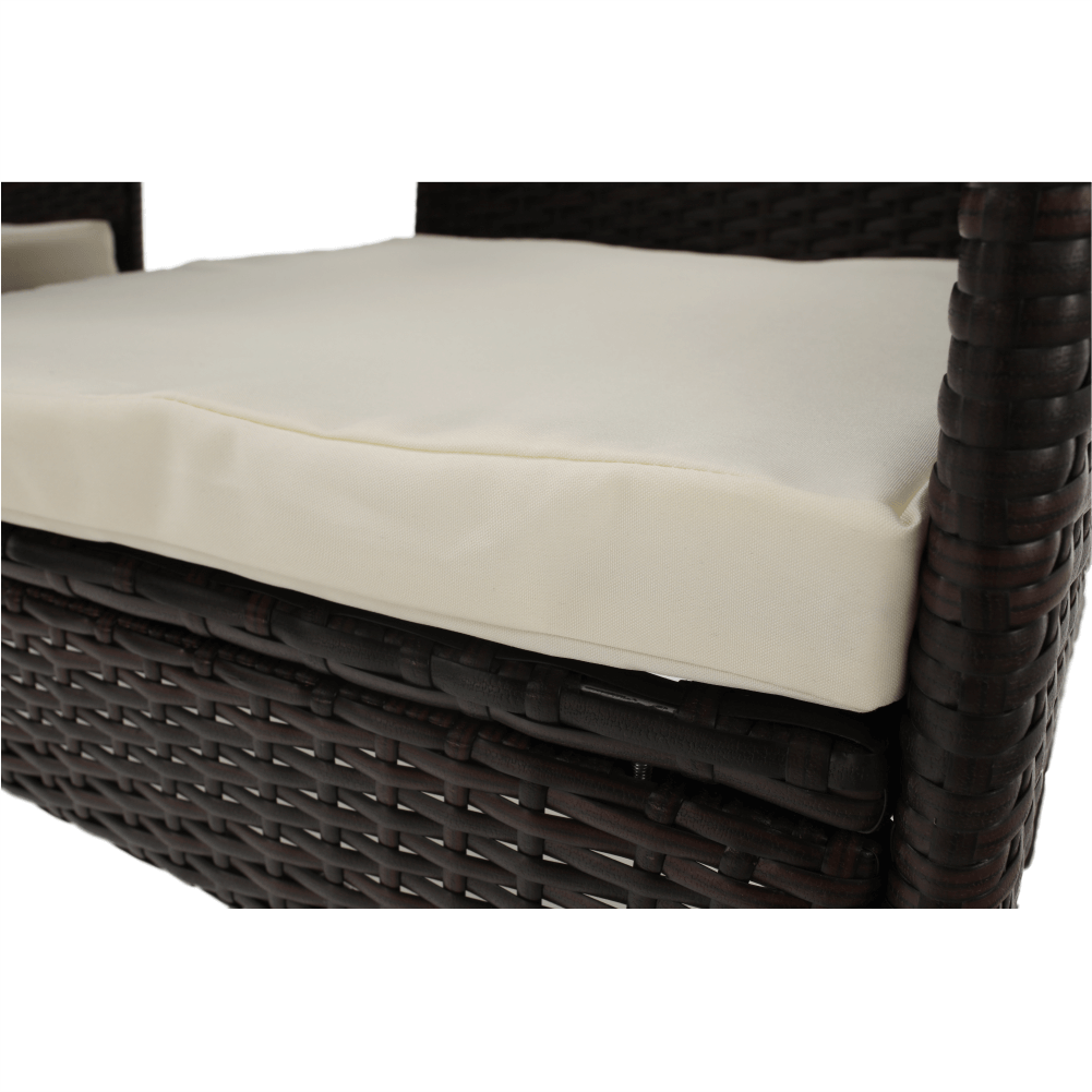 Záhradná lavica so stolíkom a poduškami, hnedá/krémová, LALIT
