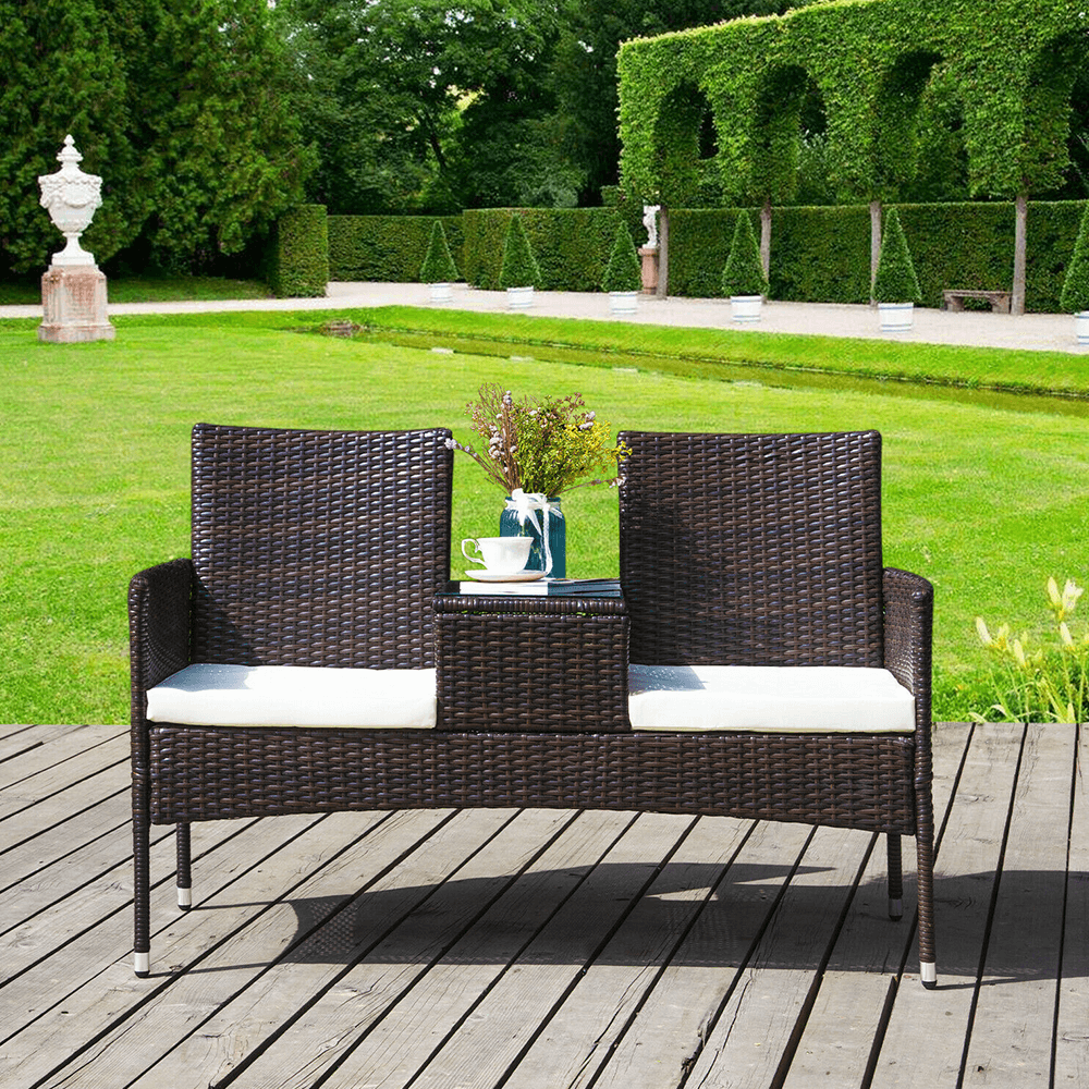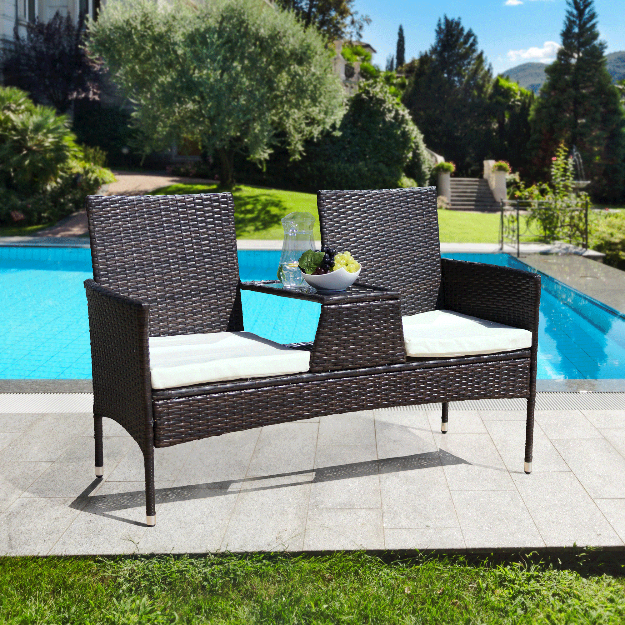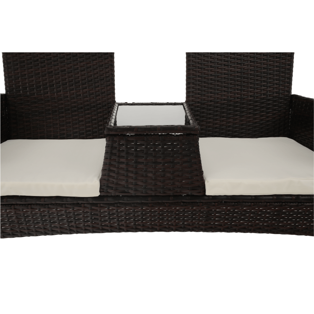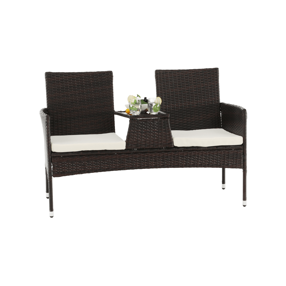 Záhradná lavica so stolíkom a poduškami, hnedá/krémová, LALIT