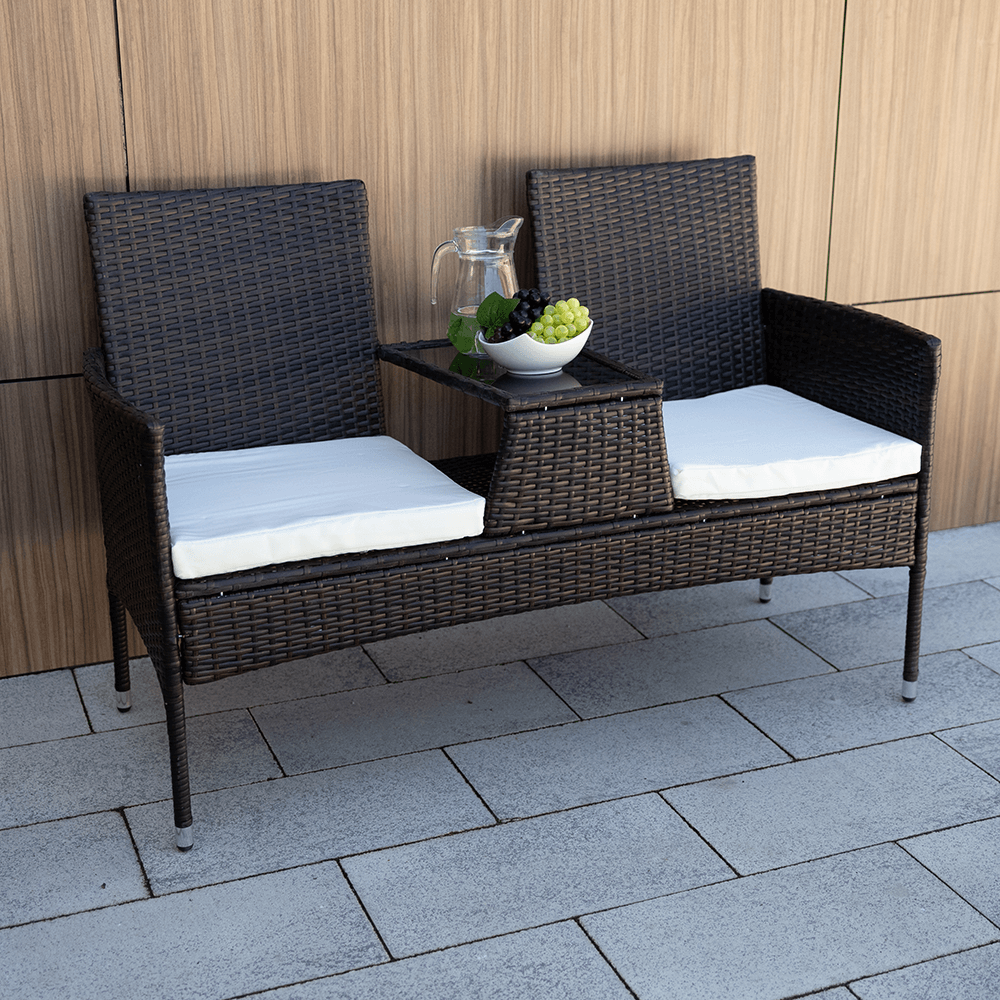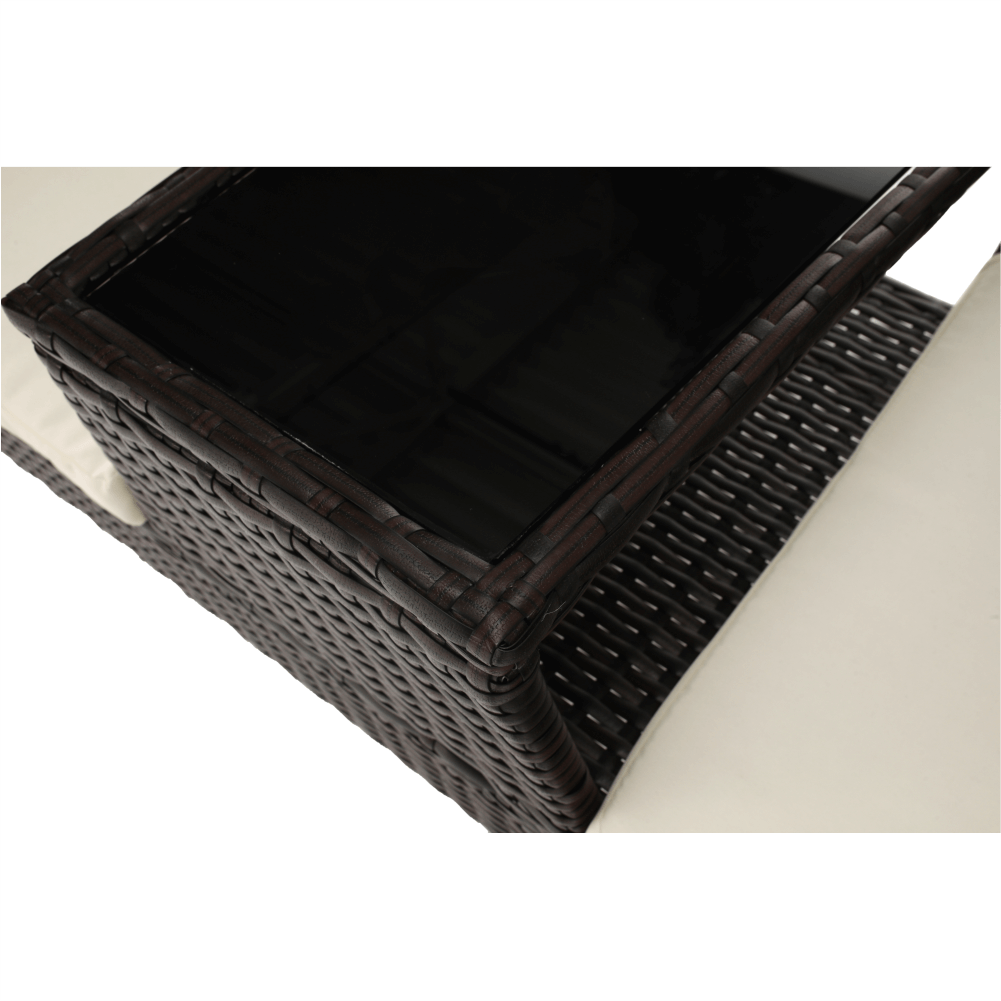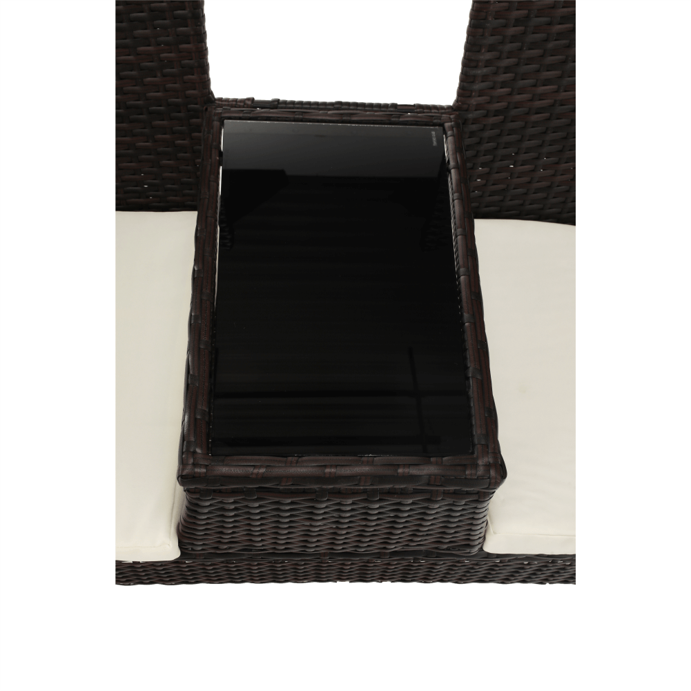 Materiál: umelý ratan/oceľ/tvrdené sklo/látka