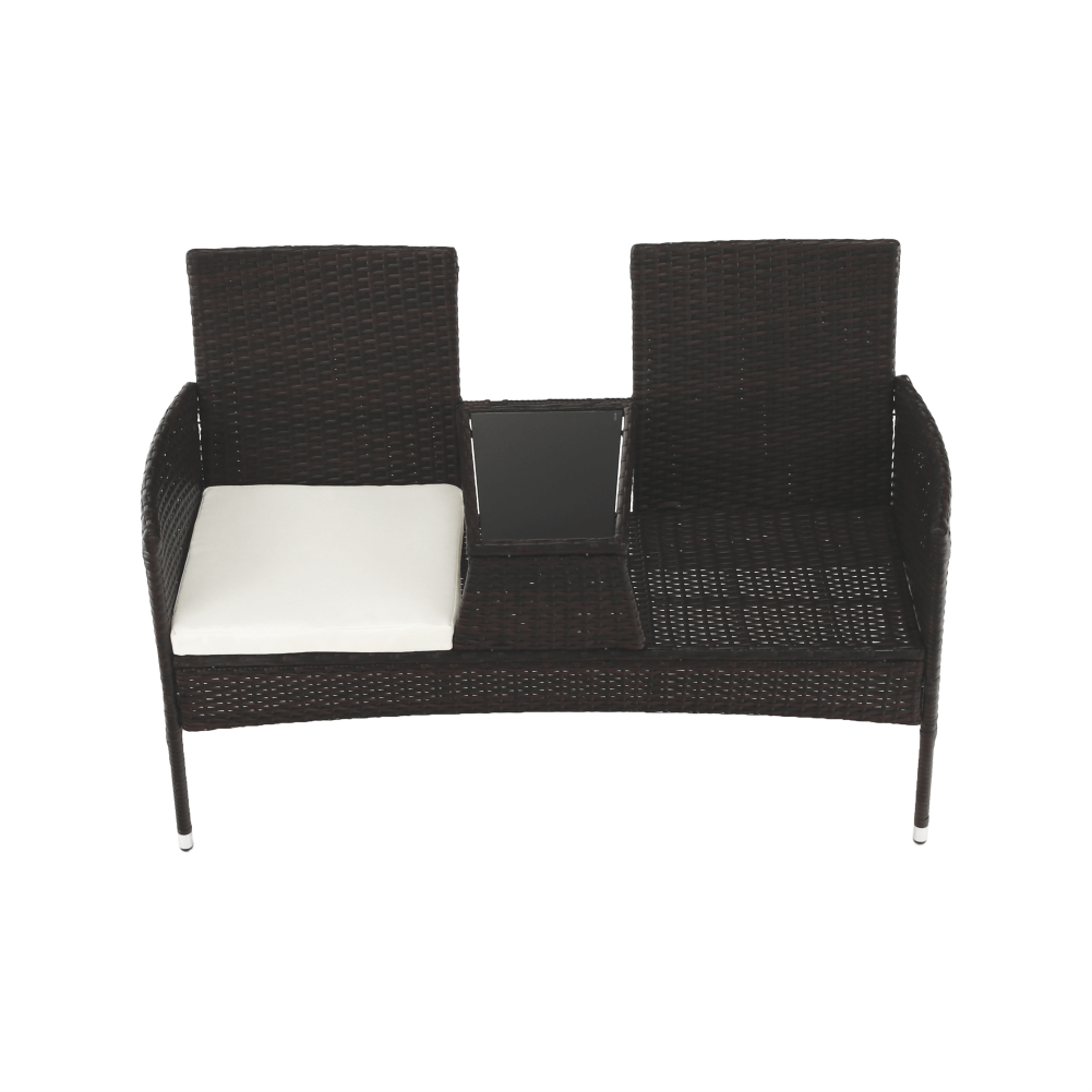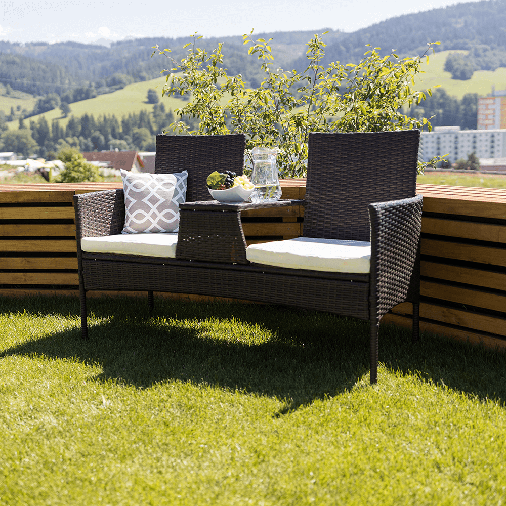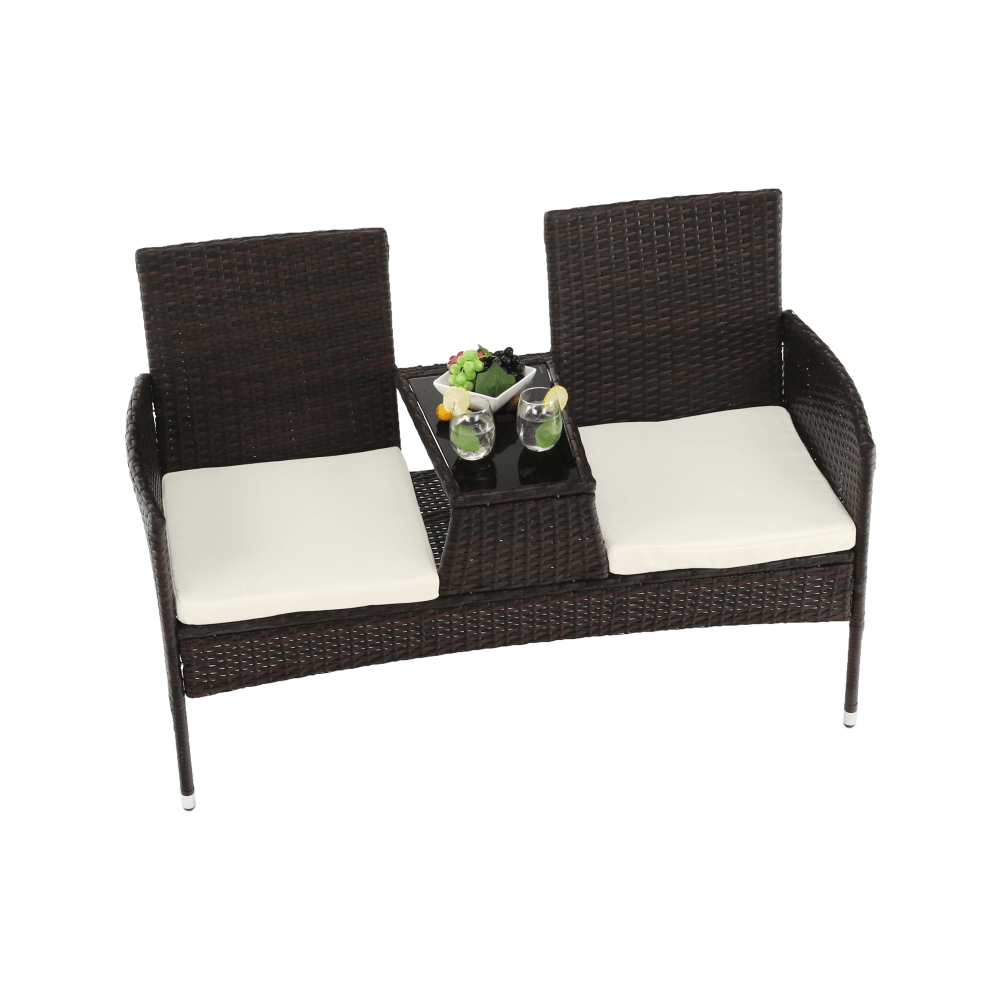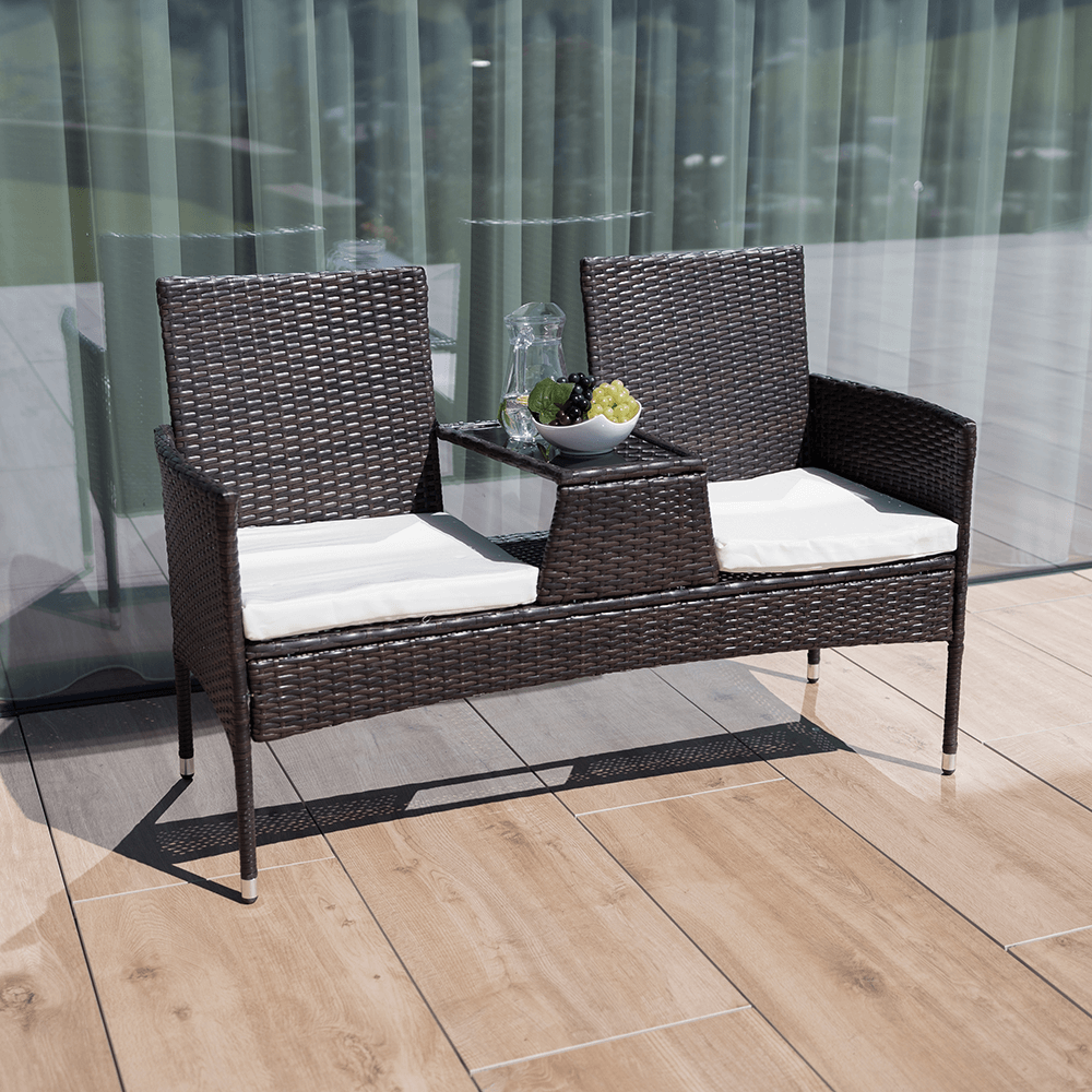 Materiál: umelý ratan/oceľ/tvrdené sklo/látka