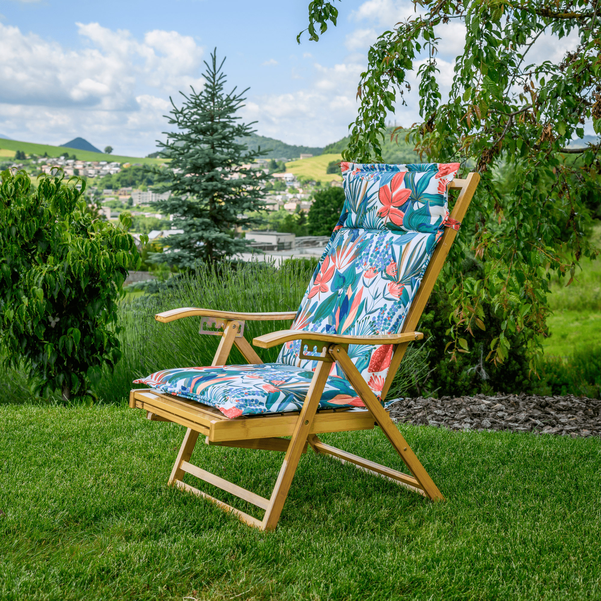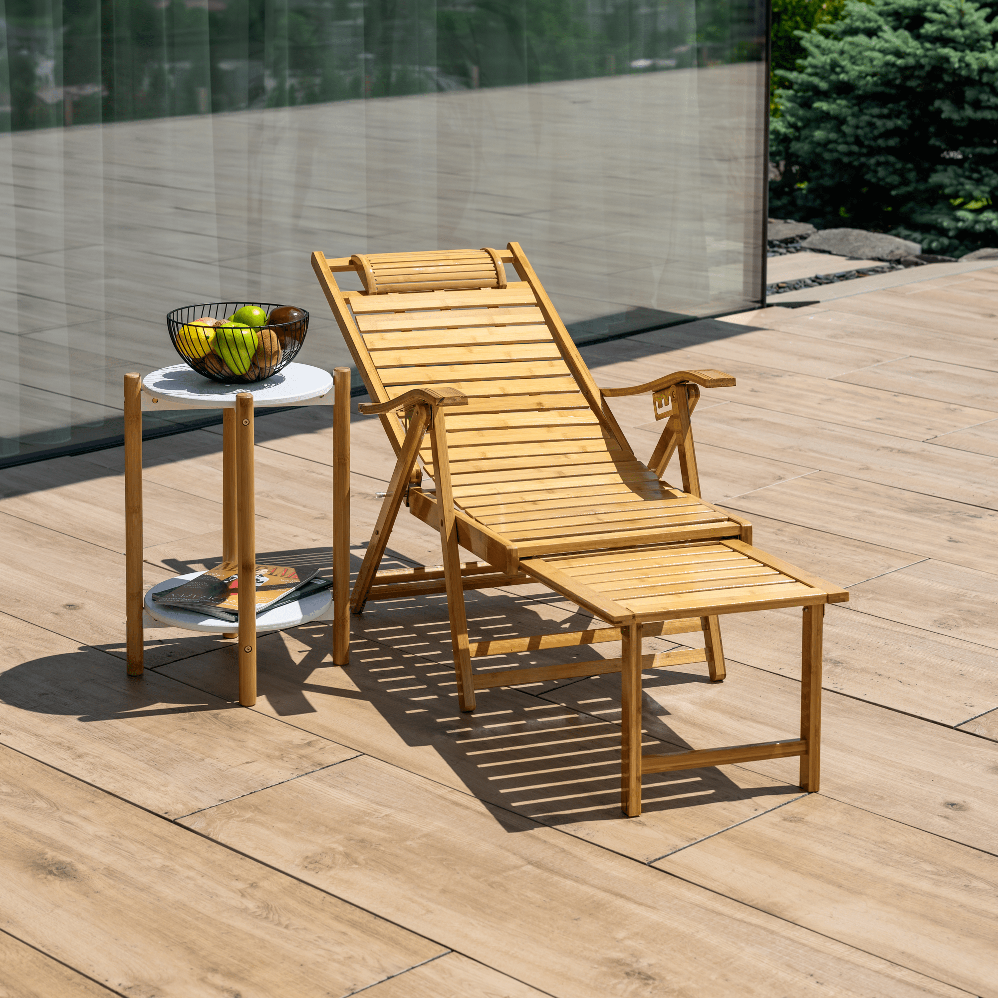 Záhradné polohovacie kreslo, prírodná, bambus, URSEL