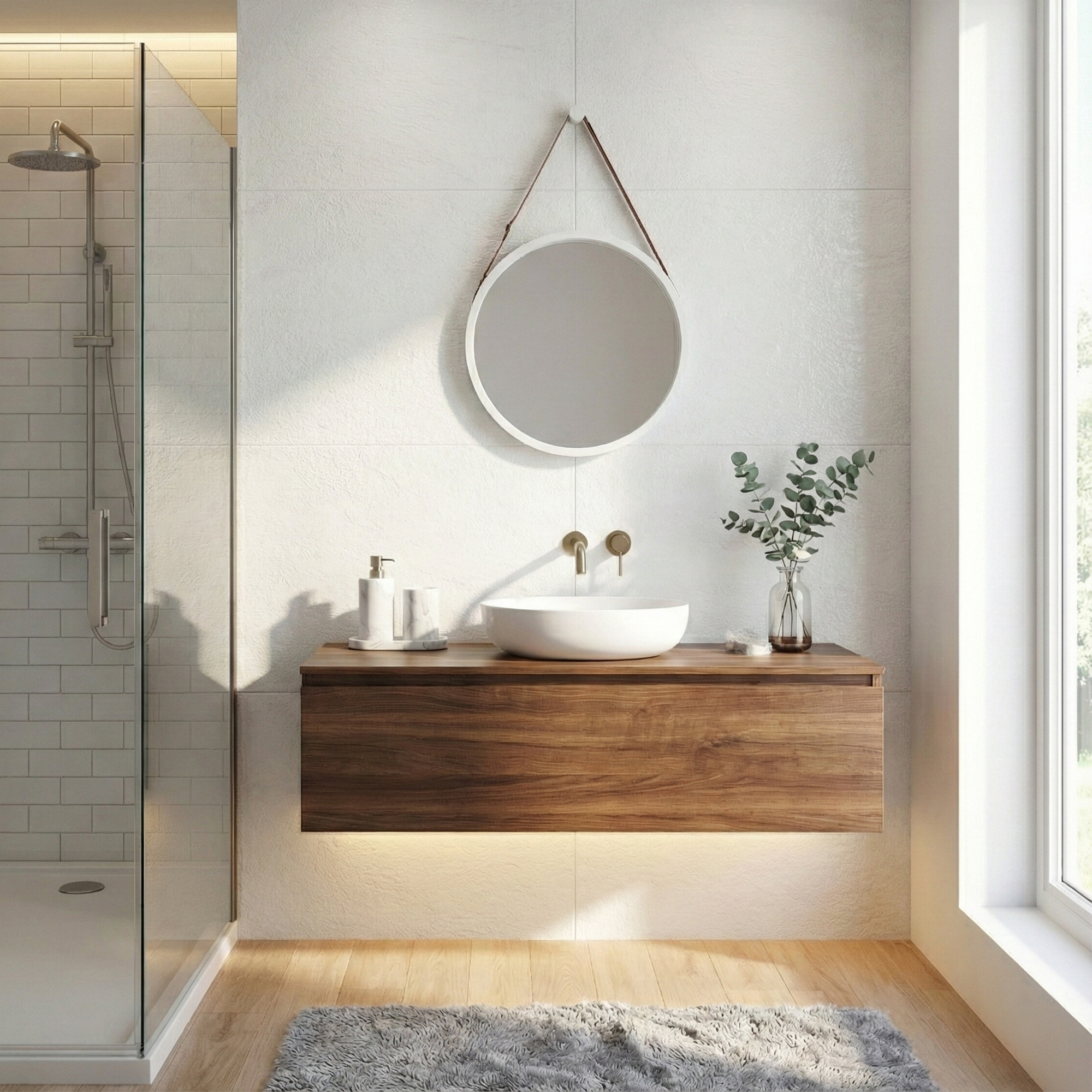 Zavesenie zrkadla: úchytka z hnedej ekokože